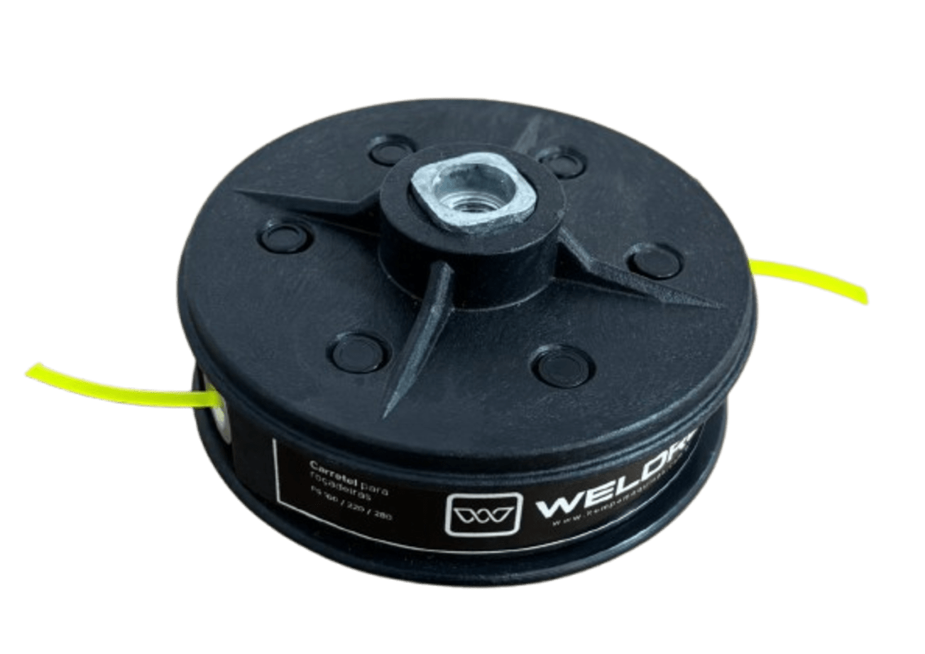 O carretel para fio de nylon para roçadeiras possui abastecimento e liberação manual, possui ainda limitador de altura para ajudar no controle da roçadeira para cortes precisos. Carretel produzido com matéria prima de alta qualidade e excelente acabamento, possibilitando maior durabilidade do acessório.