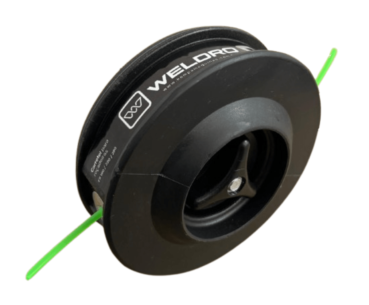 O carretel para fio de nylon para roçadeiras possui abastecimento e liberação manual, possui ainda limitador de altura para ajudar no controle da roçadeira para cortes precisos. Carretel produzido com matéria prima de alta qualidade e excelente acabamento, possibilitando maior durabilidade do acessório.
