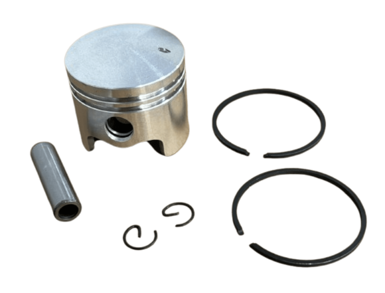 Itens do produto: 1 cilindro, 1 pistão, 2 anéis, 1 pino do pistão, 2 travas do pino.